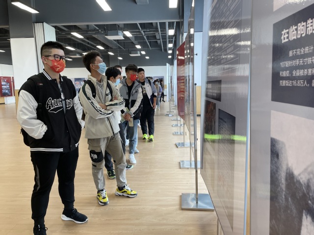 观看时,同学们屏息凝神,跟随历史的脚步,看着潍坊从饱受侵略到建立起第一个党支部,了解了党组织曲折而波澜壮阔的发展史,被势扫日寇奋不顾身的潍坊军民故事所感染,在展板前久久驻留。那段辉煌的往事里,到处都有勇于献身的身影,寿光牛头镇起义、潍县蔡家栏起义、昌邑瓦城起义、东曹庄起义……一个又一个的根据地开辟,军民始终团结一心,在上百次战役中彻底消灭了盘踞在潍坊大地上的国民党反动派,建立了人民政权,人民翻身做了主。观看过程中,同学们自觉放慢脚步,用心去感受、去致敬曾经在潍坊大地上,红旗漫卷之下,那些永远不灭的英魂。