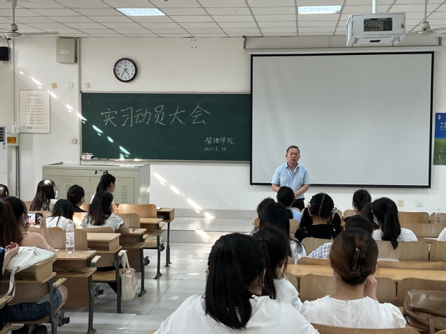 为引导学生以积极心态步入实习生活,2022年6月12日下午,八叉书库 在B304教室召开实习动员大会,学院党委副书记孙勇、管法学工办辅导员、公共事业管理专业2019级学生参会。
