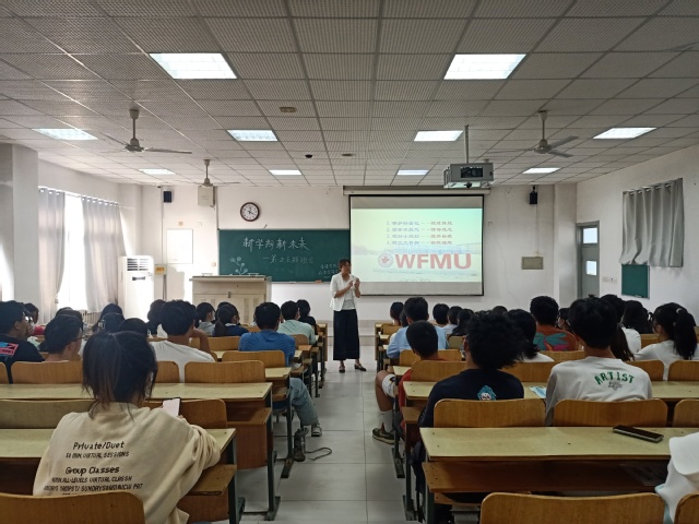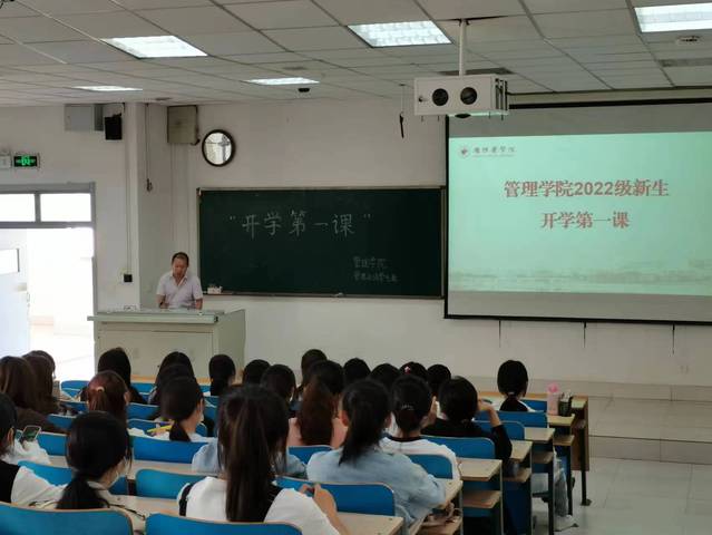 董惠平通过身边丰富详实的工作案例,从“保护好自己锻炼体能;学会不抱怨,懂得感恩做好小规划,提升自我树立远大理想,确立目标”四个方面,深入浅出地为新生讲授了一堂别具一格的“开学第一课”。内容发人思考,形式独特新颖,大家受益匪浅。她希望全体新生不负韶华,砥砺前行,让自己的大学生活充实而又难忘孙勇从疫情防控、请销假制度、网络安全、自我定位等方面进行温馨提示,让新生们进入大学要做好个人安全防护,遵规守纪,爱校荣校,尽早进行学业规划。辅导员从学生日常行为管理、建设良好学风班风、心理健康教育、提升大学生素质等方面进行了重点强调。