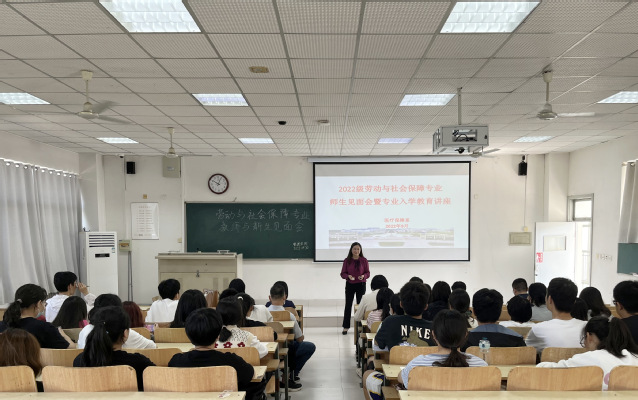 为帮助新生明确专业认知,合理规划大学生活,9月30日,八叉书库 医疗保障系于B404教室举办了2022级劳动与社会保障专业师生见面会暨专业入学教育讲座。活动由医疗保障系主任胡善菊主持,医疗保障系全体教师和劳动与社会保障专业2022级全体同学参与。