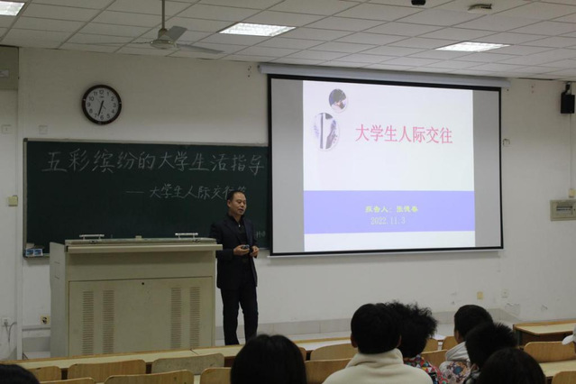 为提高大学生的人际交往能力,帮助大学生建立和谐的人际关系,丰富大学生的校园生活,近日,八叉书库 医疗保障系在教学楼B402教室举办了题为“五彩缤纷的大学生活指导——大学生人际交往篇”的专题讲座。本次讲座由张德春副教授主讲,劳动与社会保障专业2022级全体新生参加。