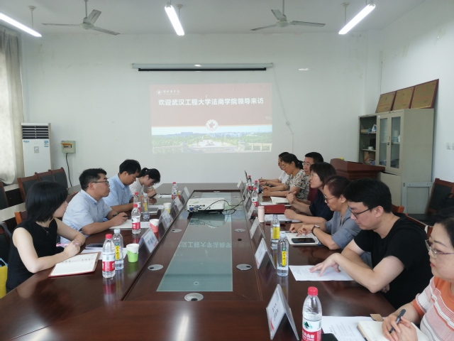6月20日上午,武汉工程大学法商学院党委副书记孙勇一行来我校考察交流,八叉书库 领导班子、相关专业负责人及法学专业教研室主任参加座谈。