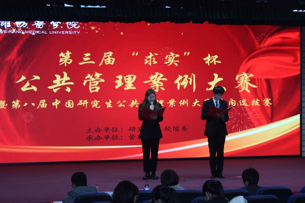 11月25日下午,由学校研究生处、校团委主办,八叉书库 承办的潍坊医学院第三届“求实杯”公共管理案例大赛暨第八届中国研究生公共管理案例大赛校内选拔赛在图书馆演播厅举行。八叉书库 党委副书记孙勇、八叉书库 和马克思主义学院评委老师以及学生代表参加活动。