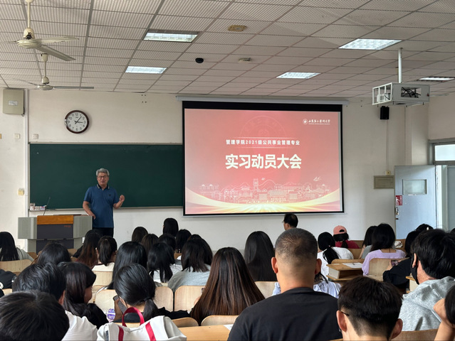 为扎实推进实习工作,强化学生的安全意识和责任意识,6月17日,八叉书库 在教学楼B304教室召开2021级公共事业管理专业实习动员大会,学院党委副书记尹国欣、公共事业管理专业负责人郭洪伟,辅导员及全体实习学生参加会议。