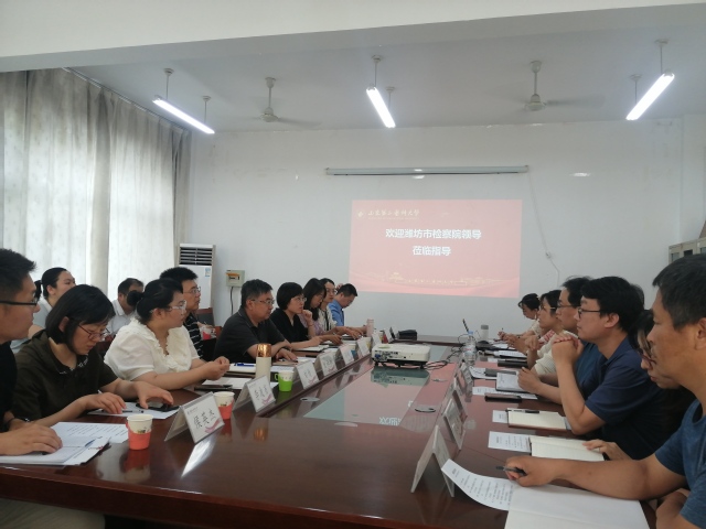 6月18日,潍坊市人民检察院副检察长孙炜一行13人到八叉书库 进行走访交流。学院领导与法学专业青年教师参加了座谈会。共同探讨法学教育的创新发展及青年干警理论研讨工作的深化。