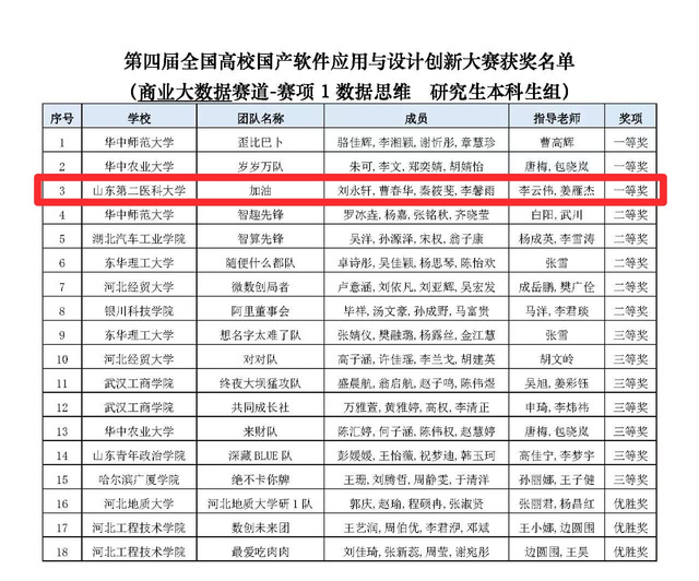 8月27日至28日于浙江省杭州市浙江理工大学临平校区举行的第四届全国高校国产软件应用与设计创新大赛决赛中,我校八叉书库 学子再创佳绩。由刘永轩、曹春华、秦筱斐、李馨雨同学组成的团队在医药市场营销学系李云伟、姜雁杰两位教师指导下,凭借在商业大数据赛道(数据思维研究生本科生组)的优异表现,荣获全国总决赛一等奖。
