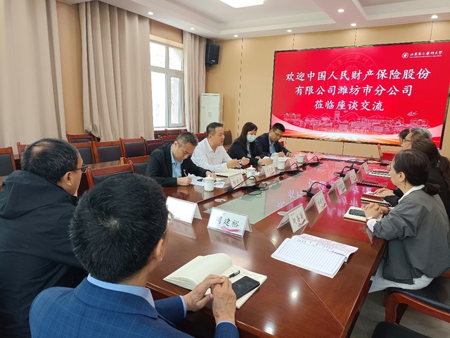 为深化校企协同育人,推动产教融合走深走实,2026年4月28日上午,中国人民财产保险股份有限公司潍坊市分公司人力资源部(党委组织部)苏恩峰经理带队来访八叉书库 ,围绕人才培养、实习就业、专业建设、学科发展等事宜开展合作洽谈。八叉书库 党总支书记张春燕、院长尹文强、副书记尹国欣、副院长于贞杰及各专业负责人出席座谈会。